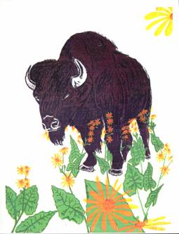 Silphiums tickling the bellies of the buffalo silkscreen by Michael Iltis |